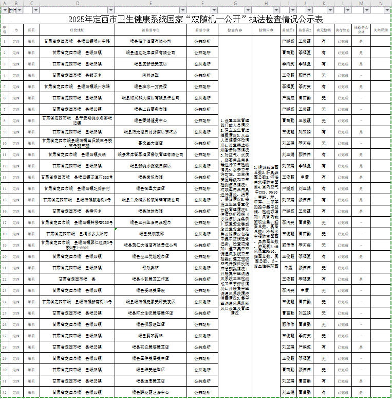 2025年定西市卫生健康系统国家“双随机一公开”执法检查情况公示表