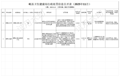 岷县卫生健康局行政处罚信息公开表(2025年11月)
