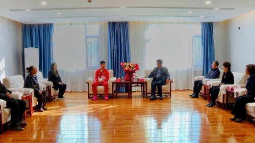 陈新民、王亚伟同孔马军亲切握手交谈,详细询问了他的比赛经历、训练生活及身体状况。
