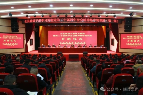 1月12日上午,全县科级干部学习贯彻党的二十届四中全会精神集中轮训班(第一期)开班。县委书记陈新民出席并作专题辅导。他强调,要深入学习贯彻党的二十届四中全会精神和省委、市委、县委全会精神,切实把思想和行动统一到党中央的战略擘画上,把智慧和力量凝聚到县域高质量发展的实践中,把学习成果转化为干事创业的强大动力,为岷县现代化建设注入强劲动能。