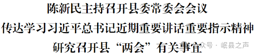 1月15日上午,县委常委会召开会议,传达学习习近平总书记近期重要讲话、重要指示精神,以及中央和省市有关会议文件精神,安排部署贯彻落实工作;听取县十七届人大六次会议、县政协十一届六次会议筹备情况汇报,讨论拟提请县两会审议、审查的有关报告文件。县委书记陈新民主持会议。