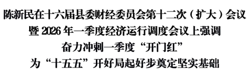 2月27日,十六届县委财经委员会第十二次(扩大)会议暨2026年一季度经济运行调度会议召开,县委书记陈新民出席并讲话。他强调,要坚决贯彻党中央和省委、市委决策部署,锚定目标、真抓实干,以“开局就是决战、起步就是冲刺”的劲头,奋力冲刺一季度“开门红”,为“十五五”开好局、起好步奠定坚实基础。